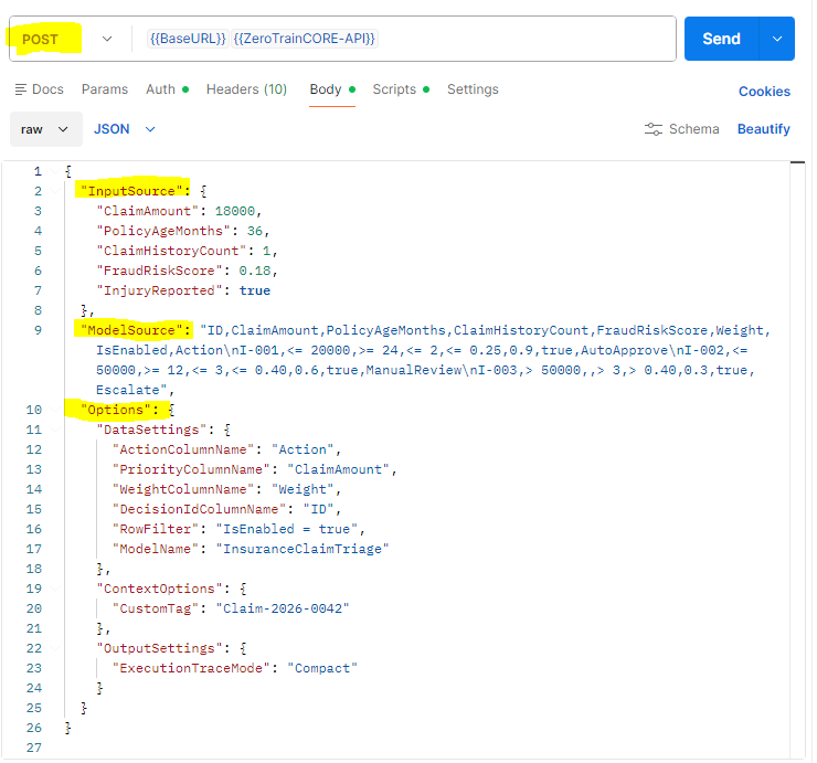 ZeroTrain API – Structural ContractThis section defines the exact structure of ZeroTrain requests and responses. The API contract is deterministic and explicit. → Request StructureA ZeroTrain request is composed of: HTTP Header