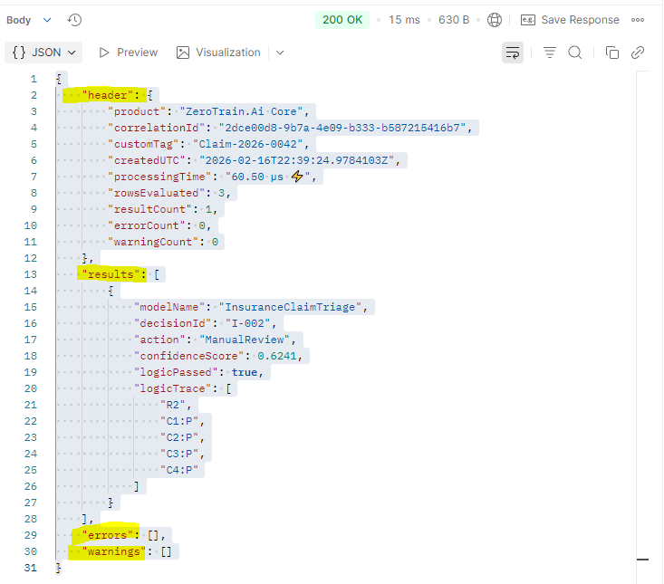 ZeroTrain API – Structural ContractThis section defines the exact structure of ZeroTrain requests and responses. The API contract is deterministic and explicit. → Request StructureA ZeroTrain request is composed of: HTTP Header