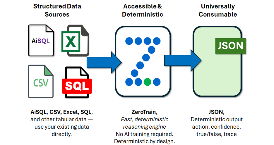 From automated decision-making to operational risk analysis, ZeroTrain.ai adapts to any logic-driven workflow. Its deterministic architecture makes it ideal for high-assurance environments that require traceable, repeatable, and explainable results.